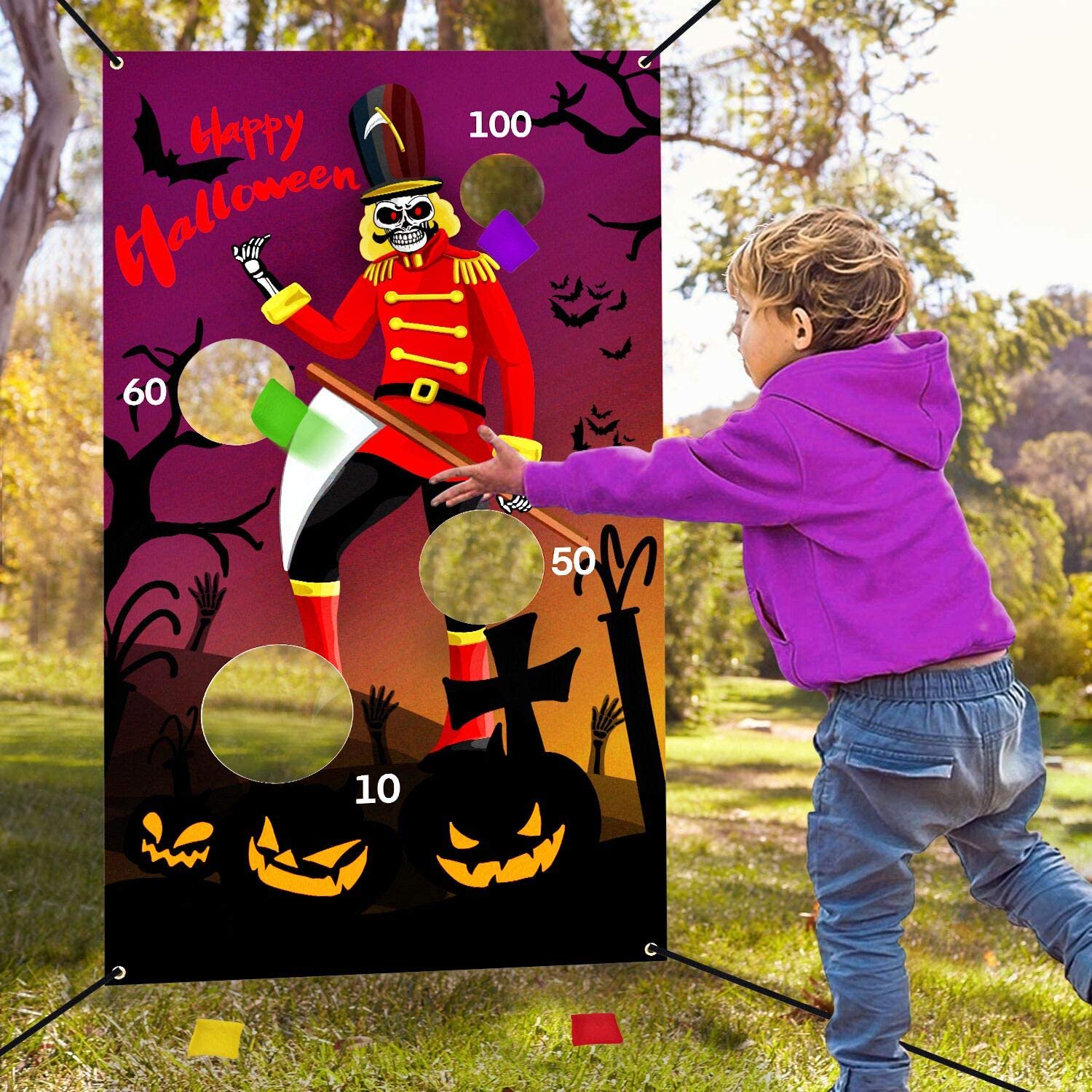 Halloween Bean Bag Toss Games For Kids Adults Halloween Party Favors Supplies Game Toys Decorations Outdoor Indoor Yard Skull Skeleton Ghost Pumpkin Toss Game With 4 Score Holes 30 X 54